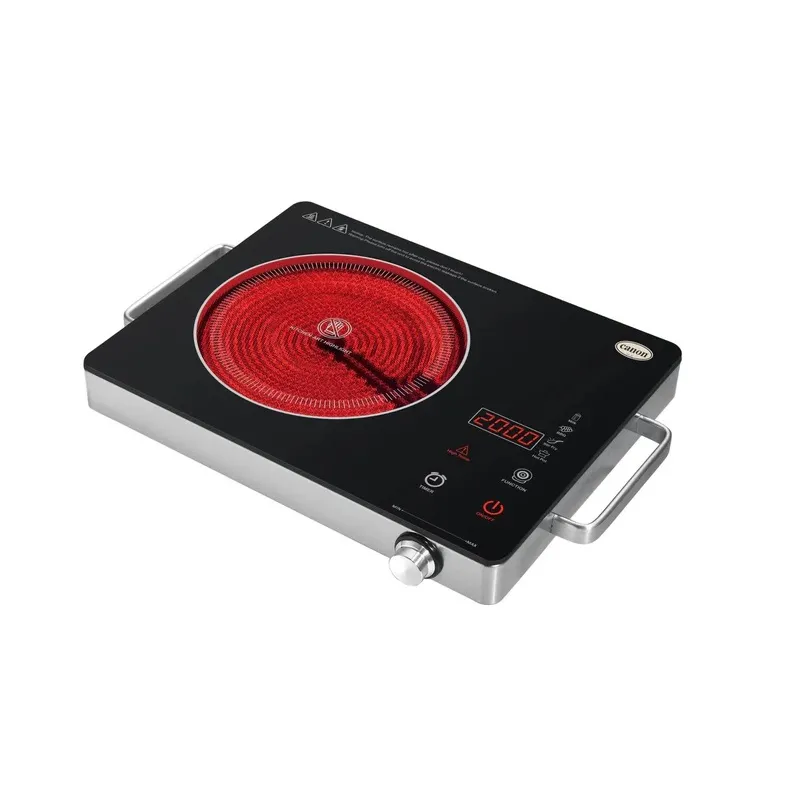 Single Burner,Metal body Polished Cystal Panel Metalic 2000W, 220V~ Knob + Sensor Touch Dimentions . All Compatible Pot 3 Hour Timer & Overheated Protection High Temperature Resistant.